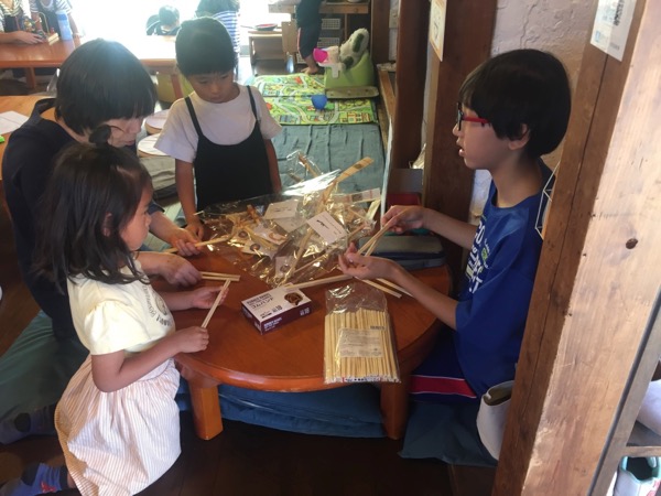 ゴム鉄砲づくりワークショップをしていました(^^)